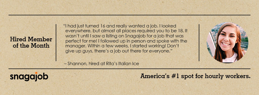 Snagajob is the country’s largest marketplace for hourly jobs and shifts, and a great, efficient app to quickly match job-seeking teens and young people with good-fit job opportunities around the freedom of their schedule, availability, and preferences.